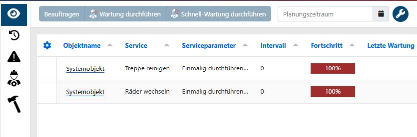 Unter der Navigation ist ein Reiter vorhanden, über den man auf die Seite des Systemobjektsgelangt. Sämtliche Services, die Historie, Störungen, Wartungen und Reparaturen können überdiese Seite beobachtet werden.