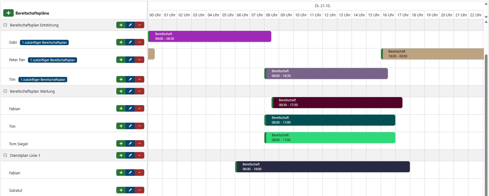Der Bereitschaftsplan erlaubt jetzt frei definierbare Pläne. Ein Plan kann bis zu ein Jahr umfassenund wiederholt sich danach. Ändert sich der Plan an einem Tag, kann dieser Tag überschriebenwerden. Die Schichtlänge kann angepasst, die Schicht gestrichen oder eine Vertretung ausgewähltwerden.