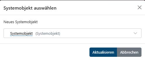 In den Einstellungen kann unter „Systemobjekt“ ein existierendes Objekt ausgewählt oder einneues erstellt werden.