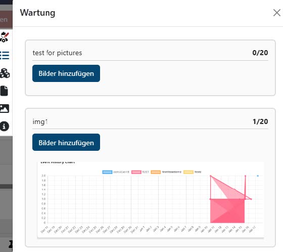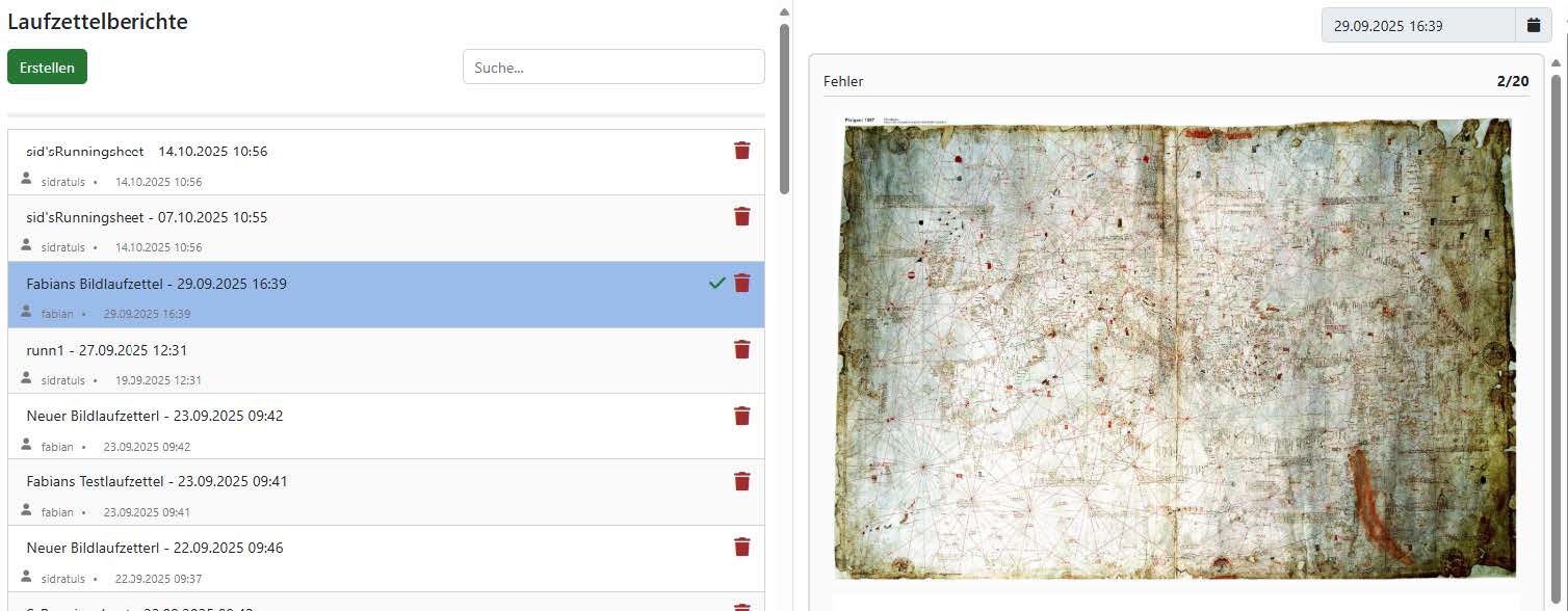 Ein neuer Feldtyp „Bild“ in Laufzetteln ermöglicht das Hochladen von bis zu 20 Bildern (max. 10 MBpro Bild). Es gibt Validierungen gegen zu große Uploads sowie Optionen zum Bearbeiten undLöschen von Bildern.
