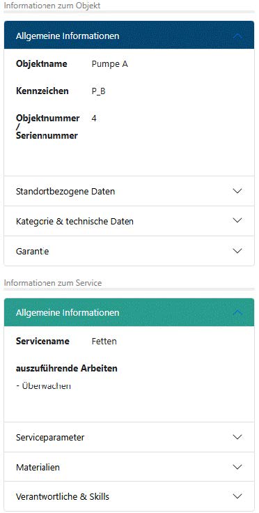 Wird über den Auftragsbaum ein Aufgabe in einem Auftrag ausgewählt, gibt es nun eine detaillierteÜbersicht mit Informationen zum Objekt und zum Service, für das die Aufgabe ausgeführt werdensoll.
