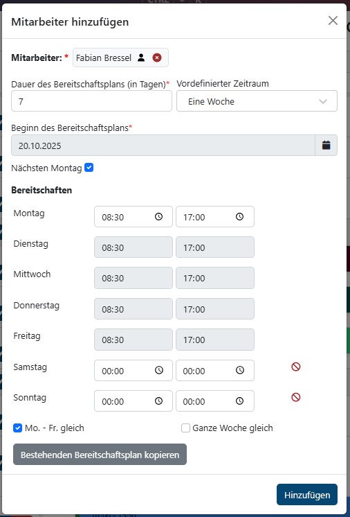 12. Neue Implementierung des Features „Bereitschaftsplan“