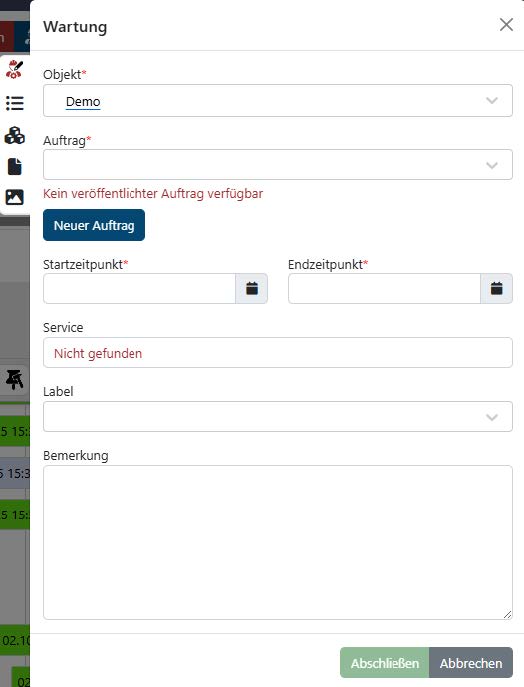 • Das Service-Parameter -Modal kann nicht mehr geschlossen werden, bis alle Pflichtfelderausgefüllt sind – unvollständige Daten werden so verhindert.