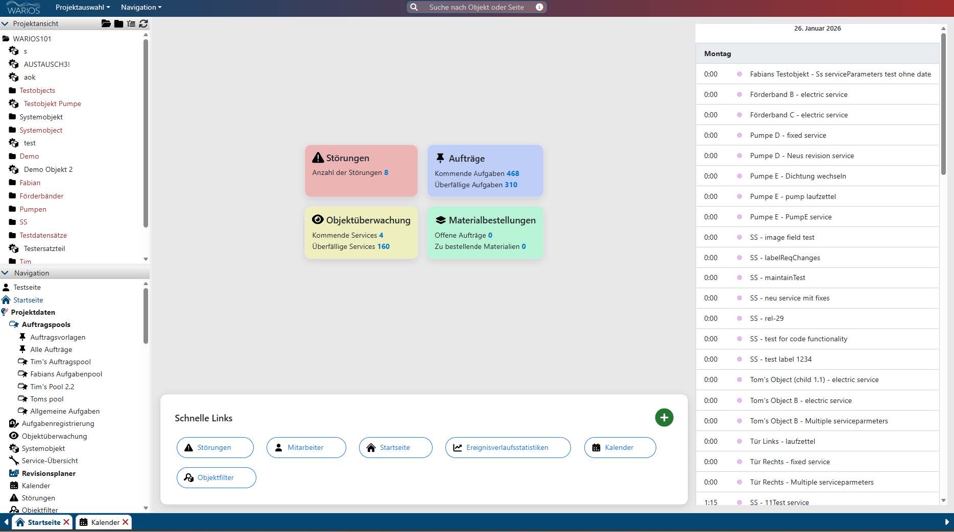 - Kalender: Ein persönlicher Kalender, der anstehende Aufgaben, Wartungen und Termine anzeigt.