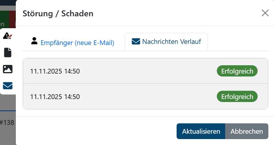 Im Störungsfenster werden nun die durch die Erstellung oder Bearbeitung einer Störung verknüpften Emails angezeigt. Dies ermöglicht es den Benutzern, alle relevanten Kommunikationsdetails im Zusammenhang mit einer Störung an einem Ort einzusehen.