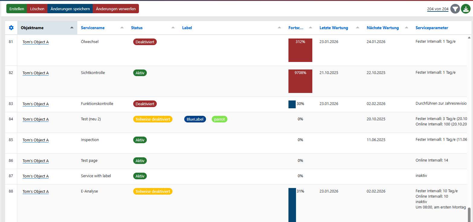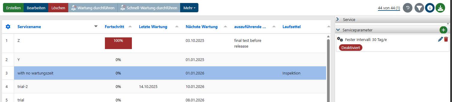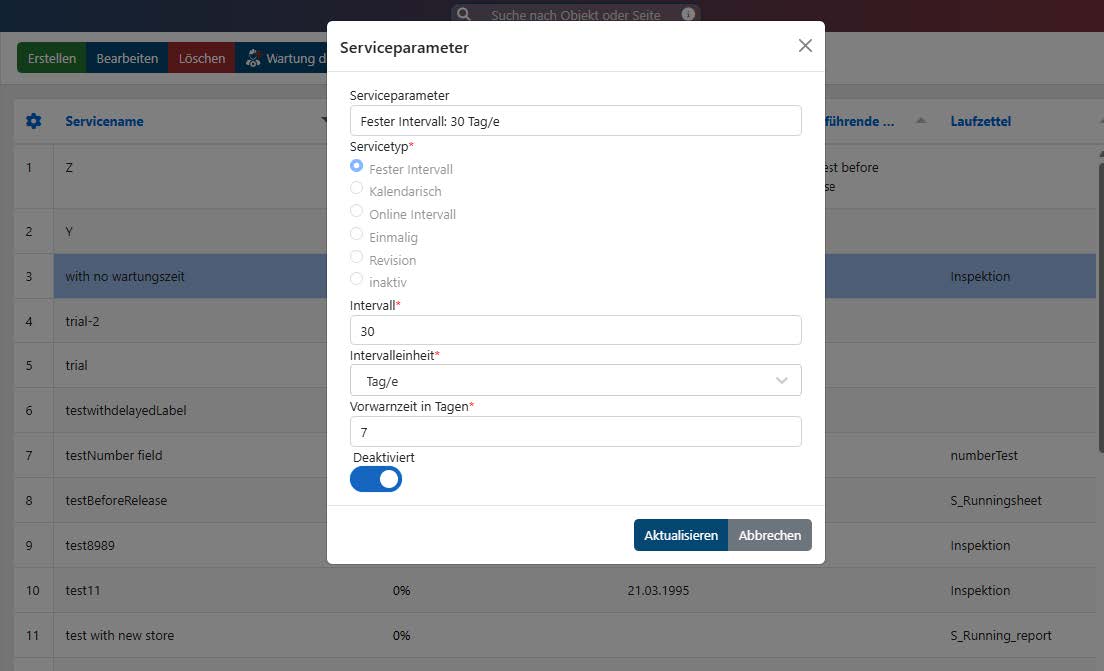 Es wurde die Möglichkeit hinzugefügt Serviceparameter zu deaktivieren. Deaktivierte Serviceparameter werden bei der Planung von Aufgaben nicht mehr berücksichtigt und erscheinen auch nicht in der Objektüberwachung. Dies ermöglicht eine bessere Verwaltung und Organisation von Serviceparametern, indem nicht mehr benötigte oder veraltete Parameter ausgeblendet werden können, ohne sie vollständig zu löschen. Sobald ein Service deaktivierte Parameter besitzt, ändert sich sein Status von „Aktiv“ in „Teilweise deaktiviert“ (wenn nur einige Parameter deaktiviert sind)oder in „Deaktiviert“ (wenn alle Parameter deaktiviert sind). Dies erleichtert die Identifizierung desaktuellen Zustands eines Services auf einen Blick.